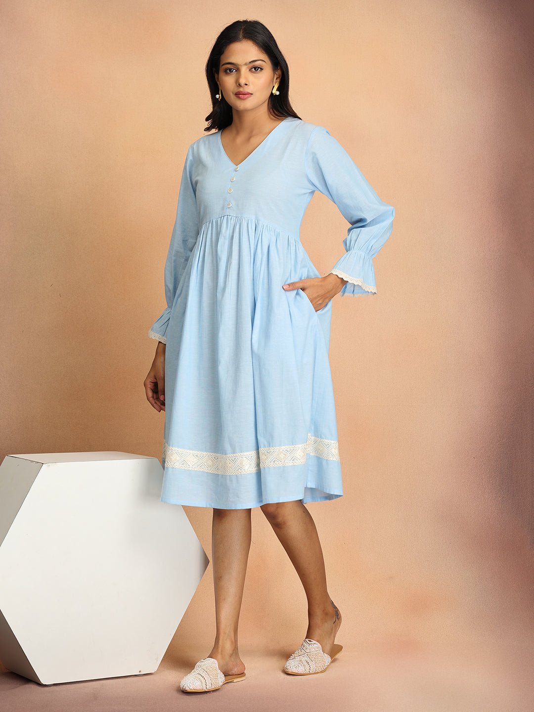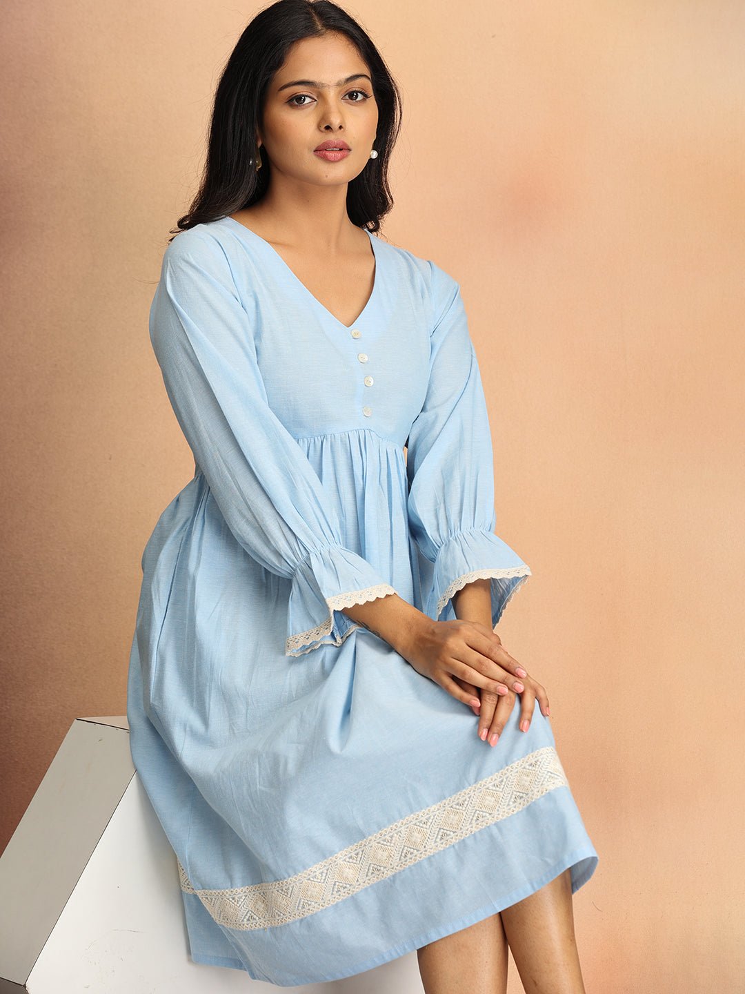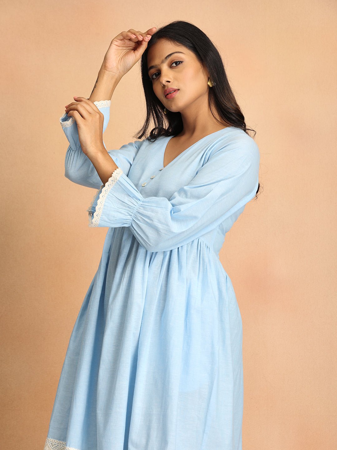 • Lace trimmings at Sleeve and Bottom Hemline