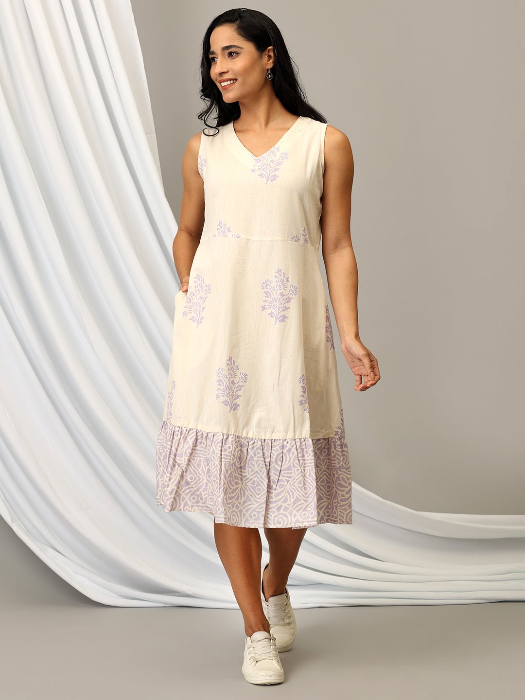 • Khadi Dress with Screen print at tier
