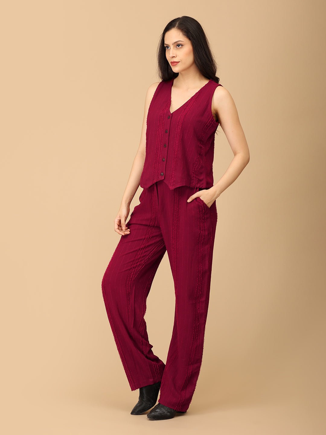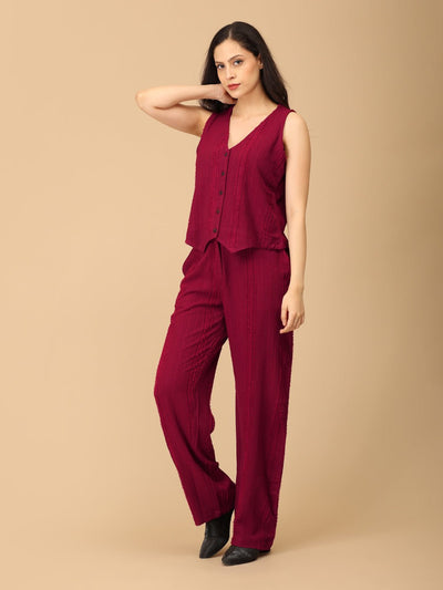 • Textured Womens Waistcoat Vest And Pant Set with Frills