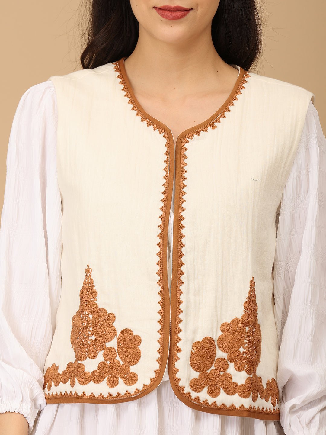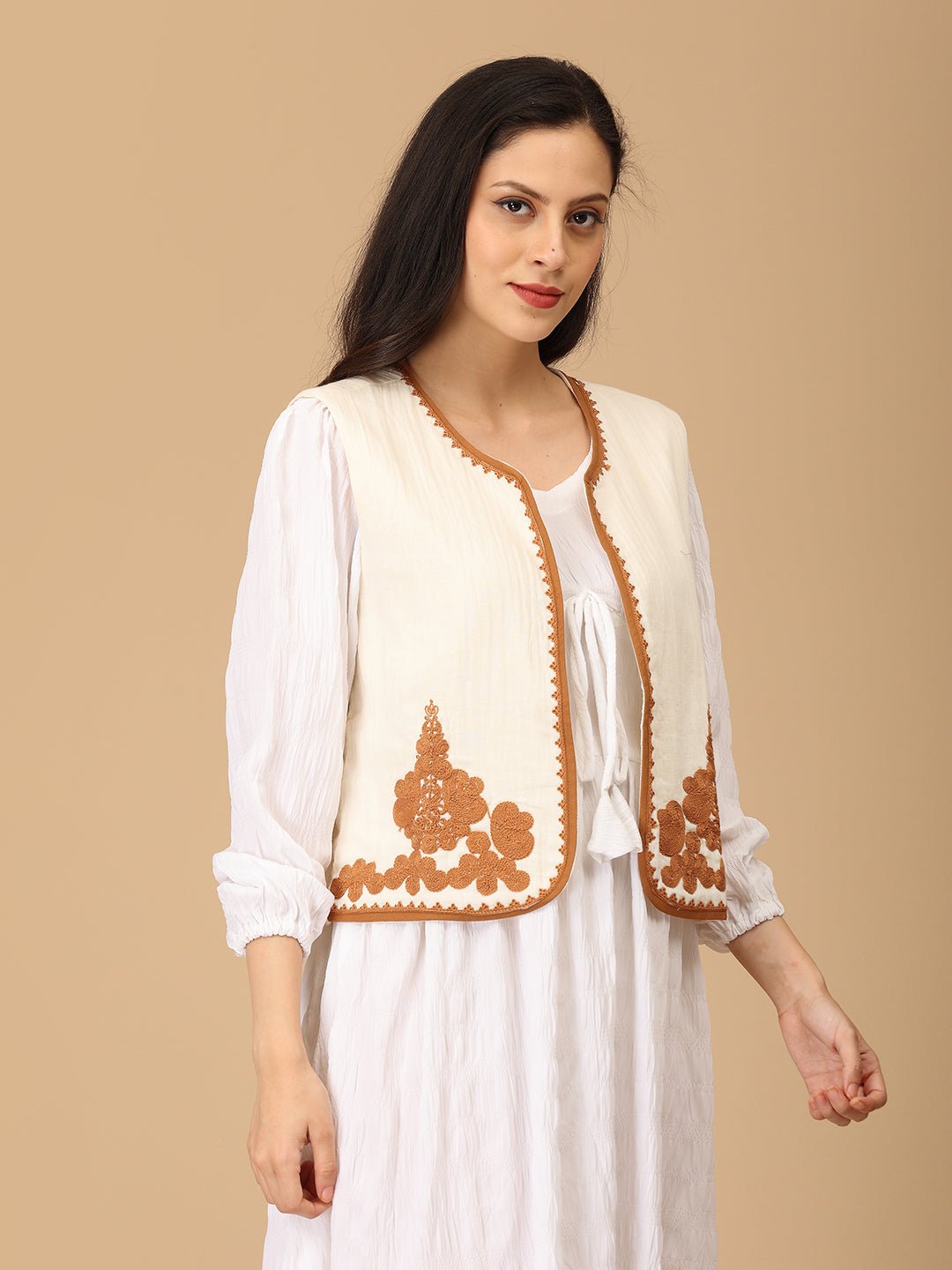 The neutral beige color of this vest top makes it easy to pair with a variety of bottoms, from jeans to skirts. Whether you're dressing it up for a night out or keeping it casual for a day of running errands, this embroidered vest top is a versatile piece that will quickly become a staple in your wardrobe.